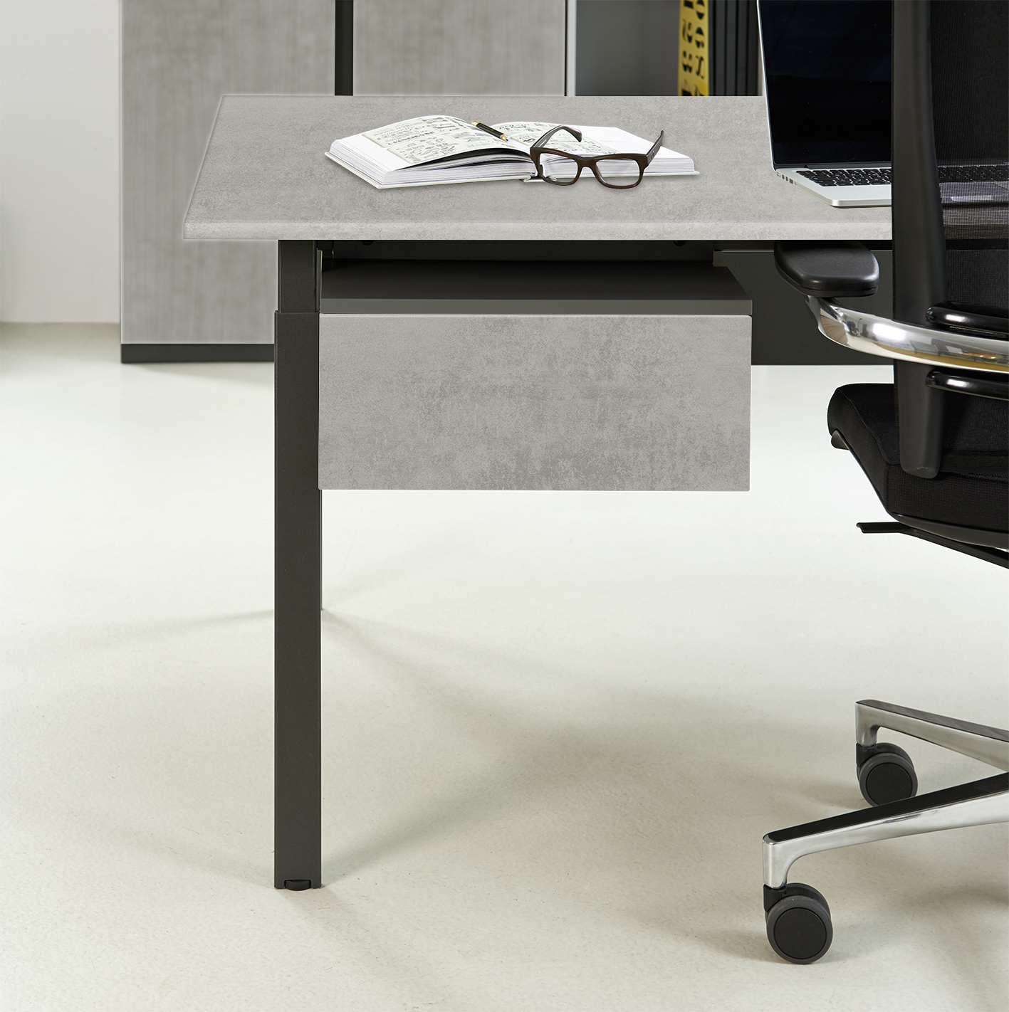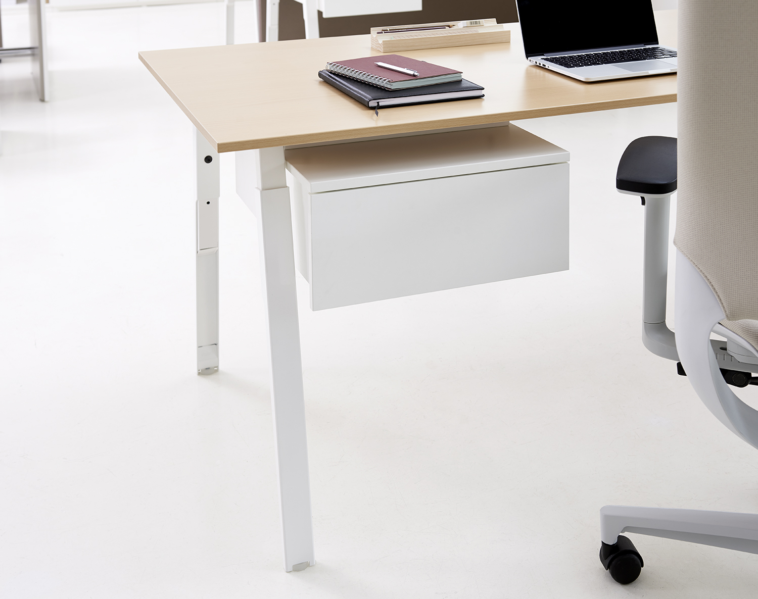 Sox ist ein leichtes, flexibles und designorientiertes Tischsystem. Die Platte ist 16 mm dick. Die Plattentraverse liegt auf den Seitenrahmenprofilen jeweils an 2 Punkten auf, wodurch ein schwebender Charakter entsteht. Die schlank dimensionierten Seitengestelle bestehen aus einem oberen Basisteil, in vier Farben (matt gepulvert) und den Socks, in 15 Farbtönen (glänzend gepulvert sowie zusätzlich in Edelstahl und Chromoptik) erhältlich. Die Fixierung zwischen Basisteil und Socks bestimmt die Tischhöhe. Der moderne, höhenverstellbare, designorientiere Schreibtisch Sox lässt sich höhenmäßig von 680 bis 820 mm in 20 mm Schritten einstellen. Sox bietet rechteckige Tische in unterschiedlichen Breiten und zwei Tiefen von 800 und 1000 mm.