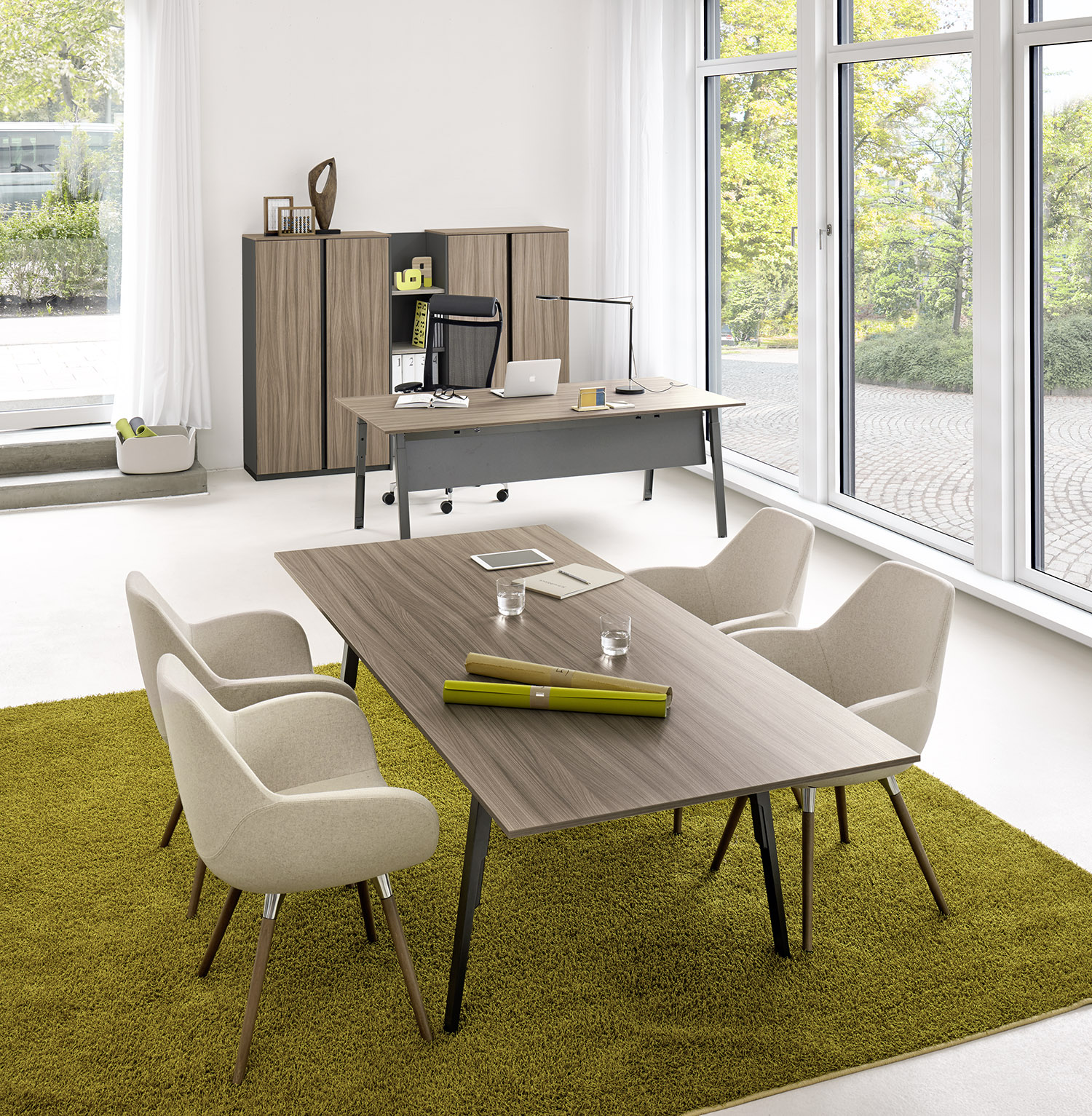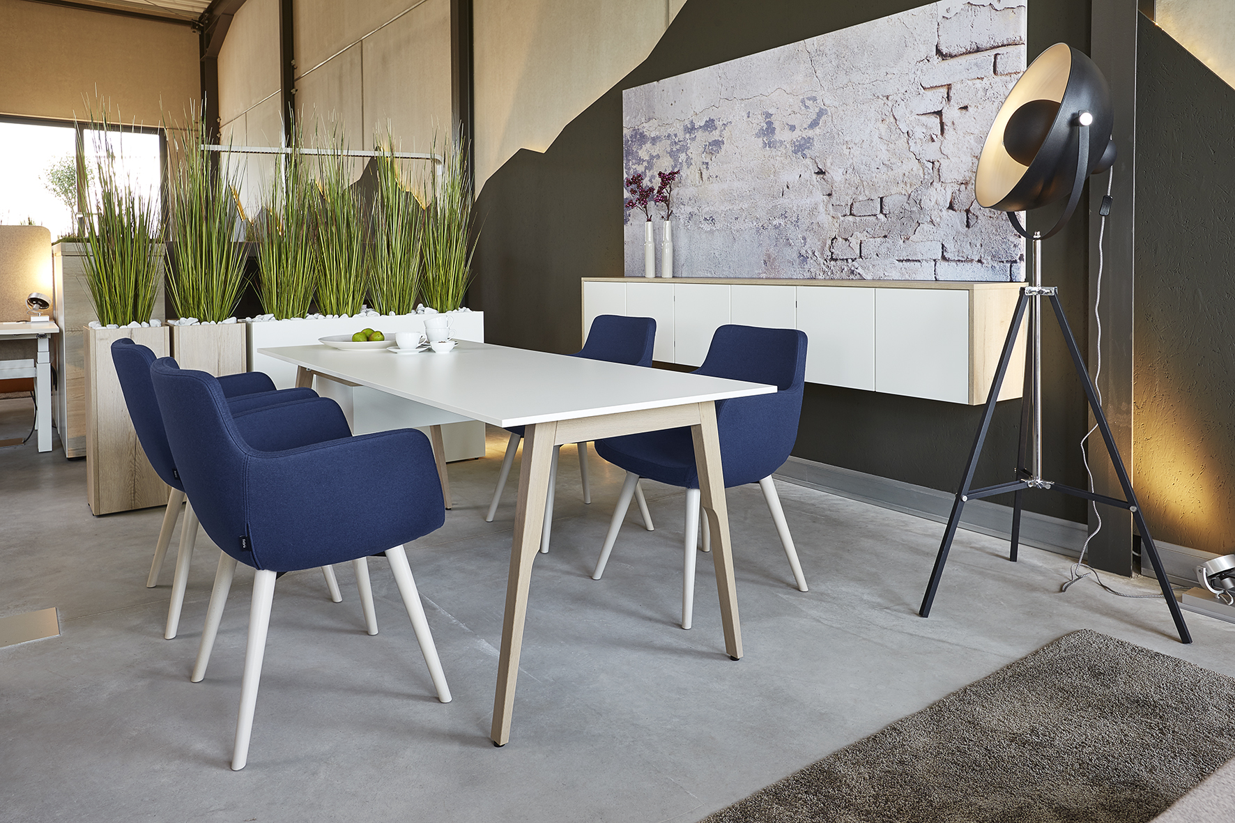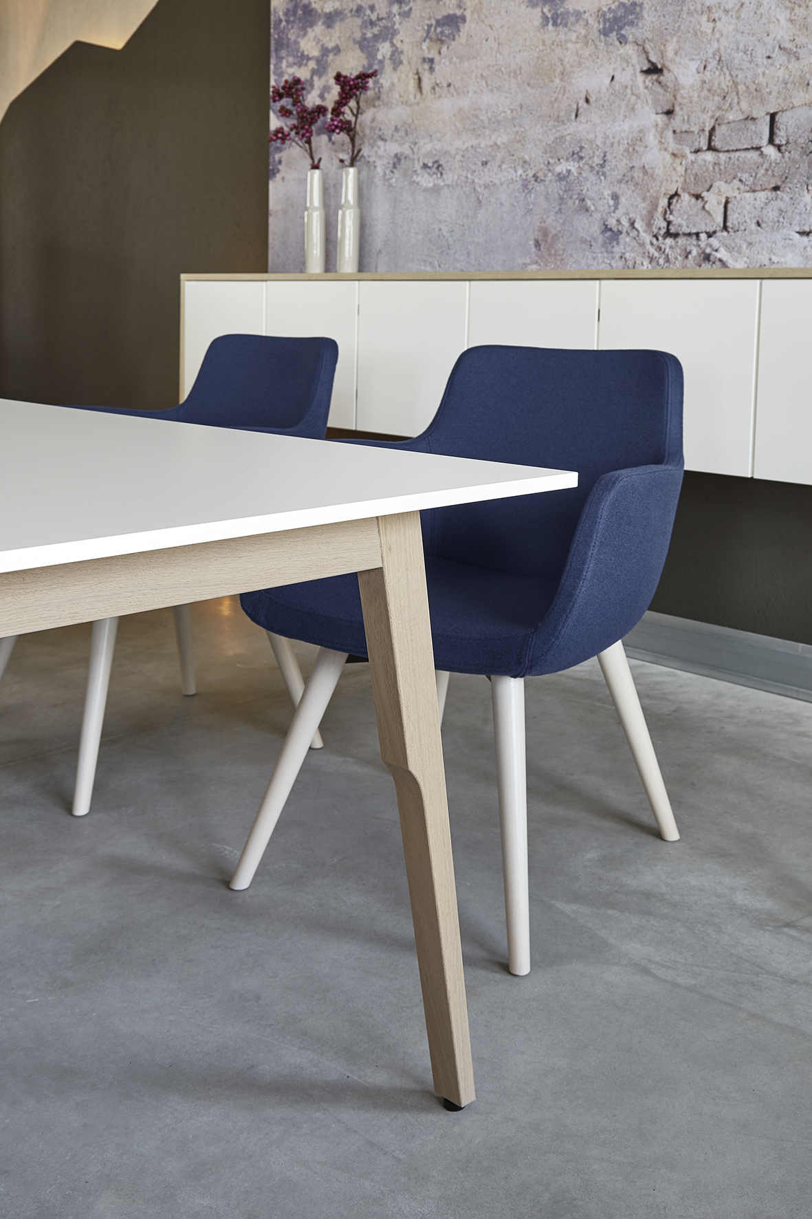 Mit seinen schräg angesetzten Tischbeinen und der schmalen, fast schwebenden Tischplatte erinnert Sox an nordische Design Klassiker. Sein modernes und luftiges Äußeres integriert sich perfekt in jeden Raum und lässt sich farblich individuell anpassen.