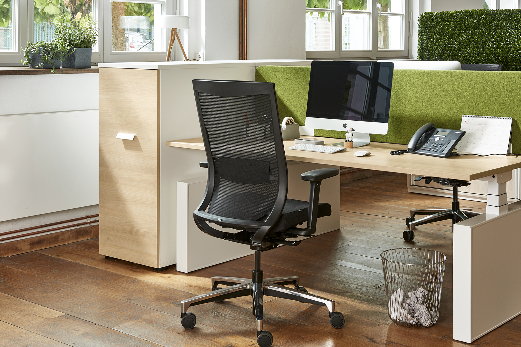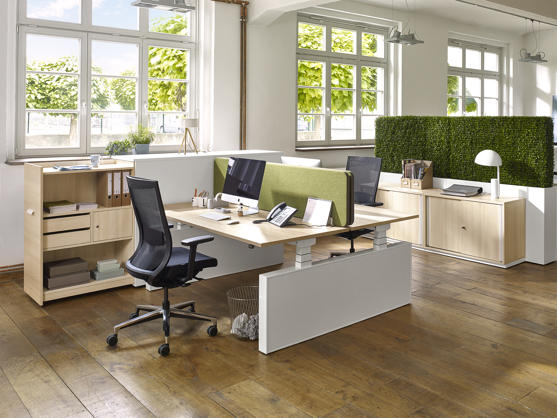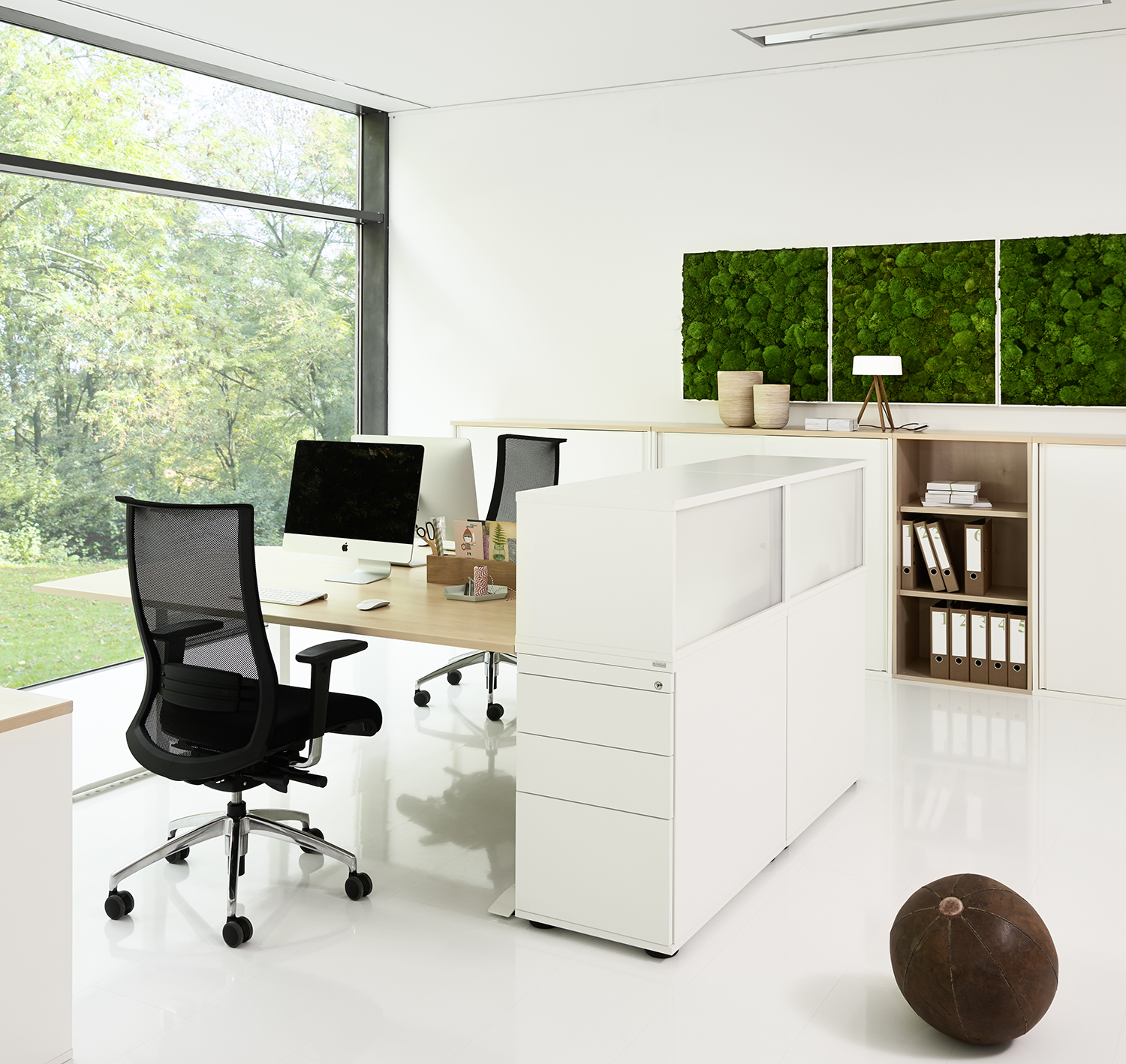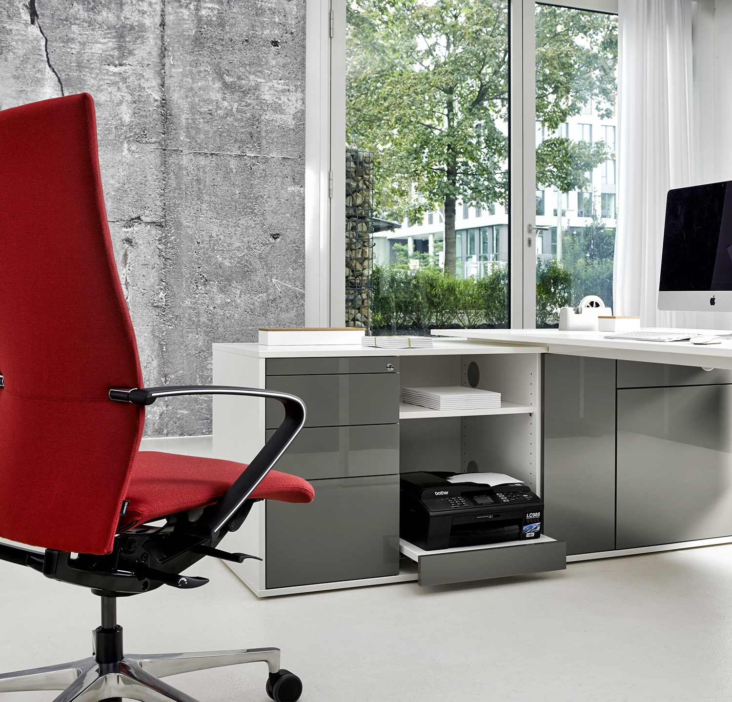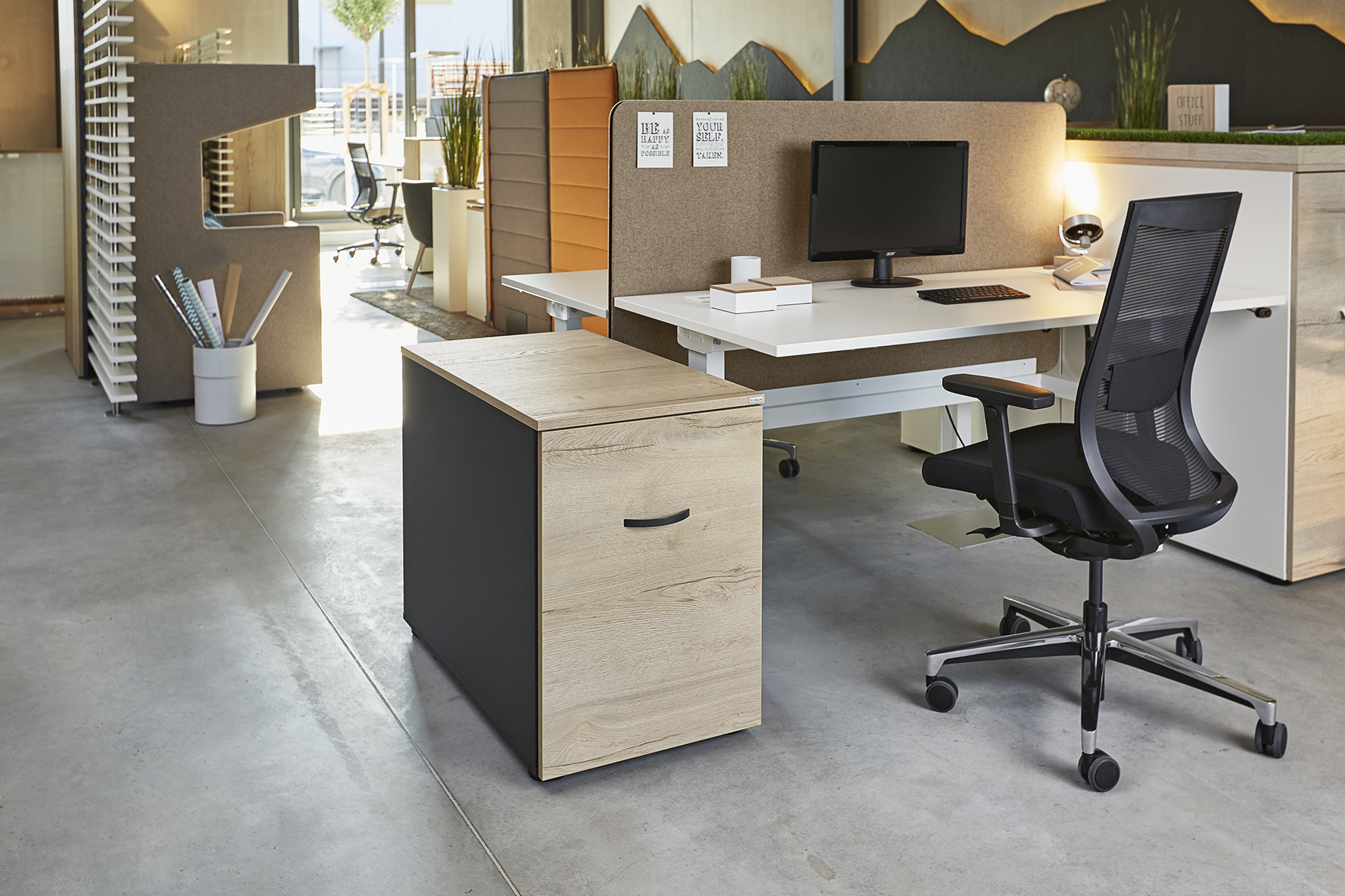 Unsere Hochcontainer bieten Sichtschutz und einen umfangreichen Stauraum, der sich nach individuellen Wünschen gestalten lässt. Schließfächer, Auszug für Hängeregister, Ordnerablagen oder Schubladen gehören zu den Einrichtungsoptionen für das praktische Büromöbel. Der Hochcontainer lässt sich durch ein leichtgängiges Rollensystem zügig schließen und ermöglicht dadurch im Handumdrehen Ordnung im Büro. Die besondere Höhe des Containers wirkt edel und ist zugleich Sichtschutz. So bietet er genügend Privatsphäre am Arbeitsplatz.