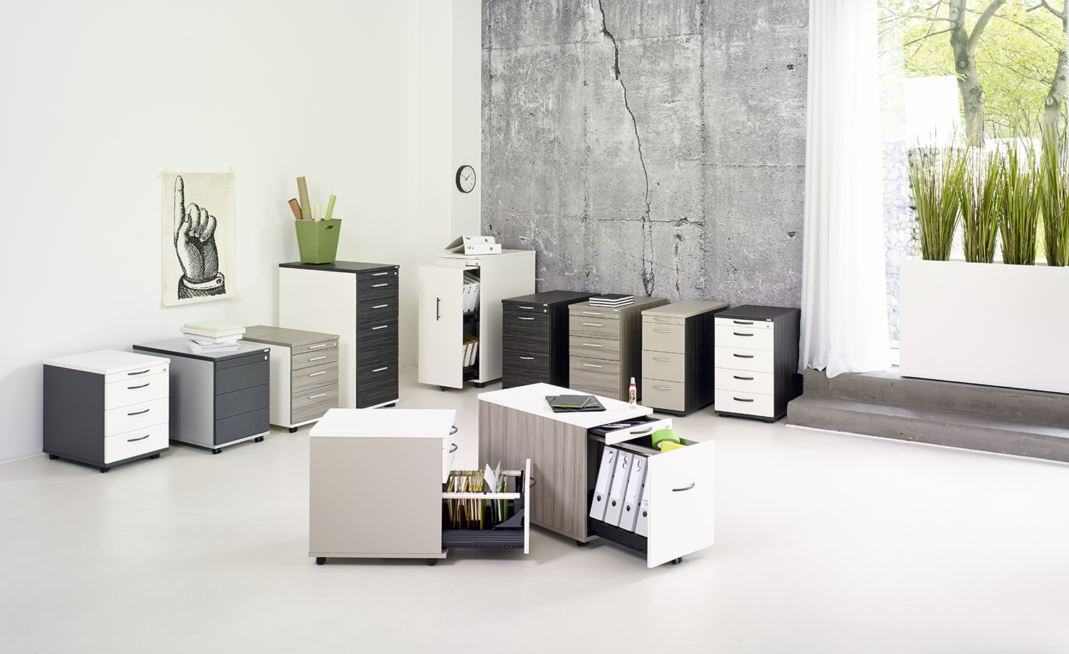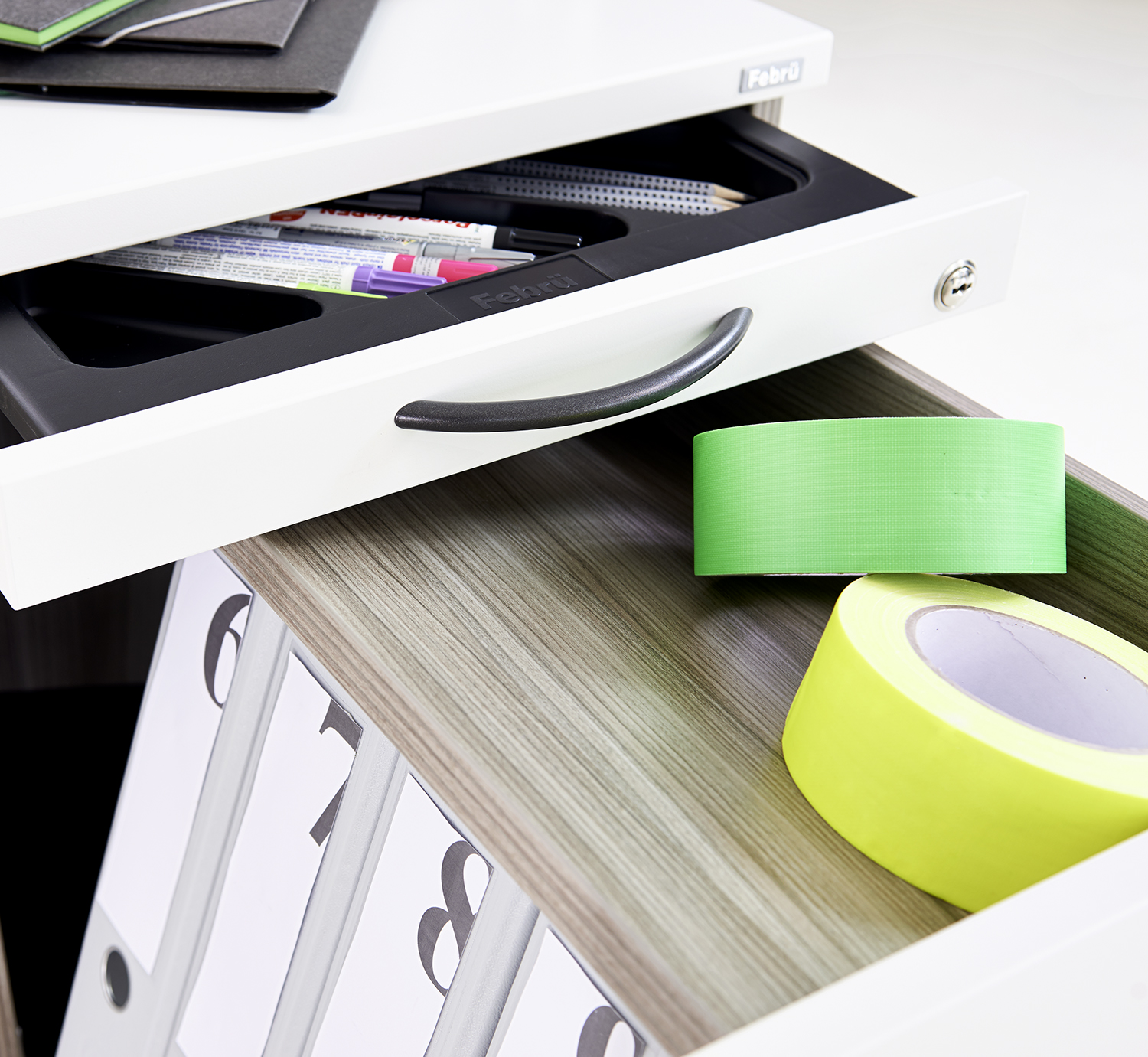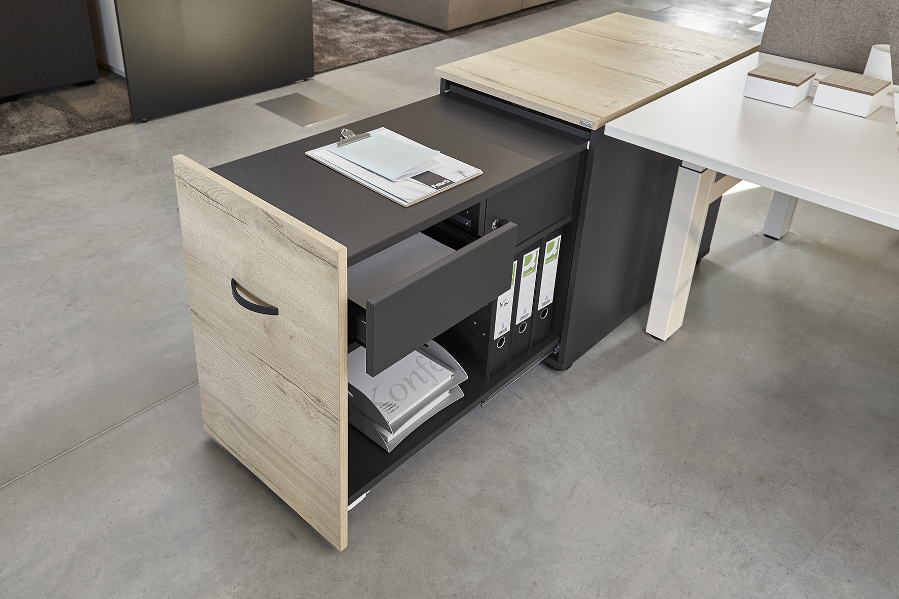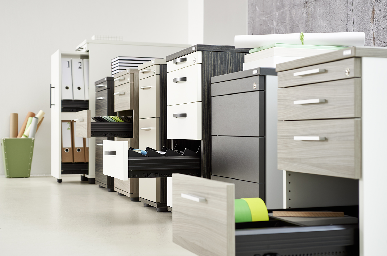 Passend zum Tisch, mobil und belastbar, organisierbar und abschließbar: unsere Container sind Ordnung mit System.