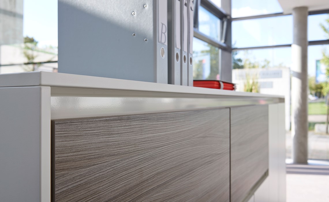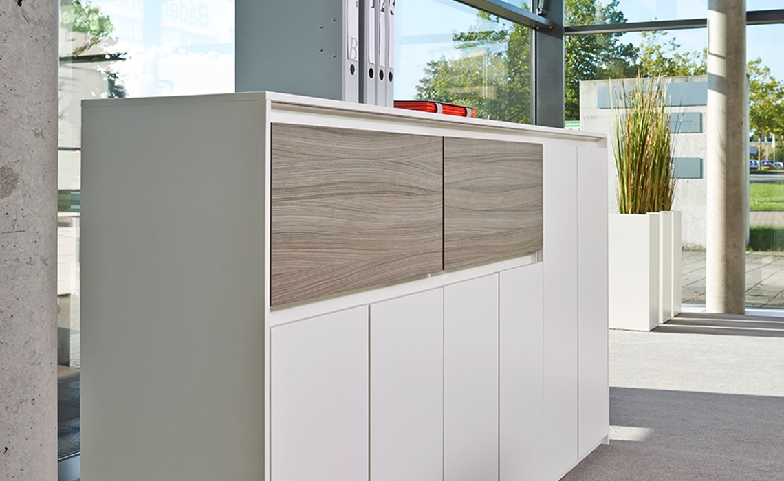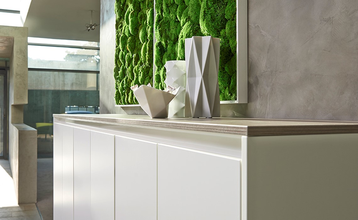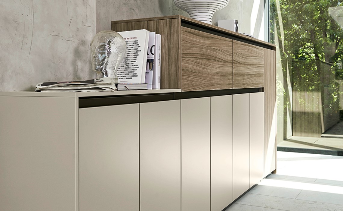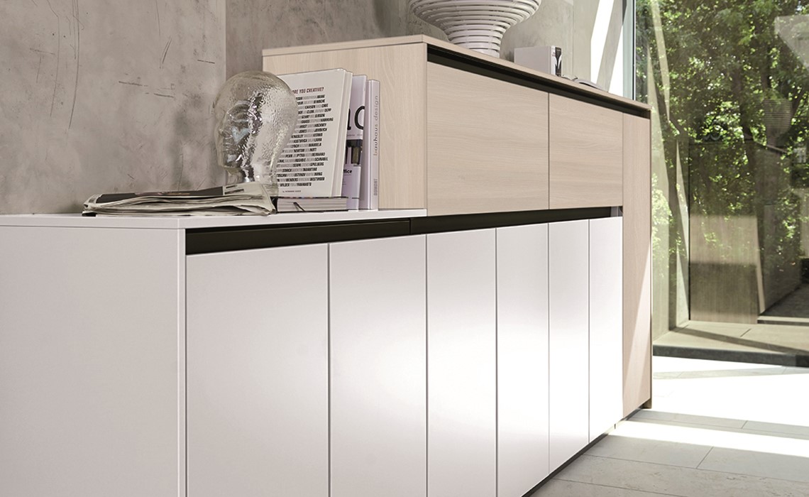 Purline, die Serie ausgewählter Schrankelemente mit grifflosen Fronten. Dabei sind die Kombinationsmöglichkeiten unendlich und lassen sich genau nach Ihren Vorgaben und Anforderungen anpassen.