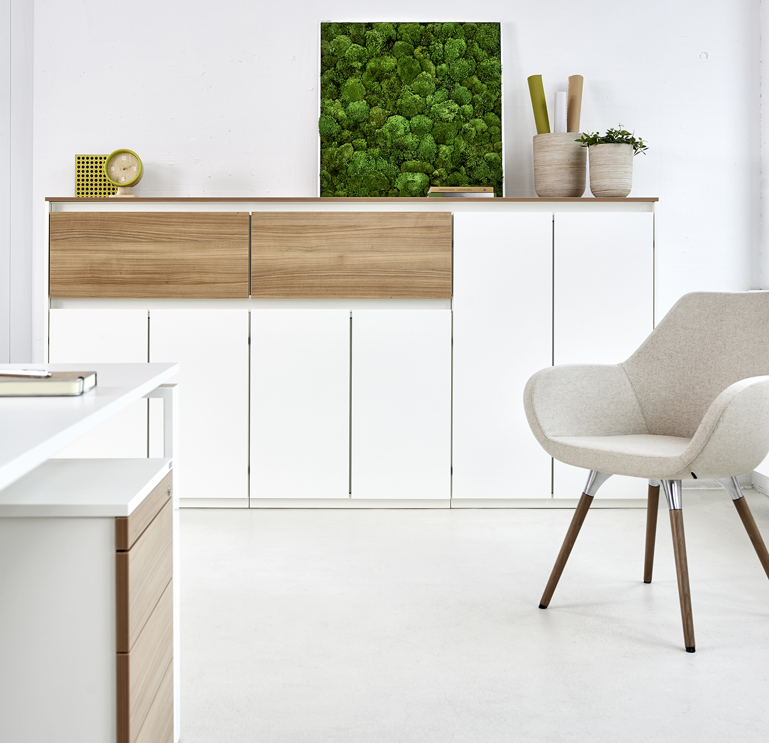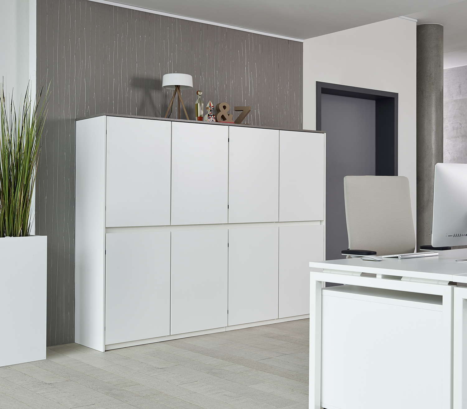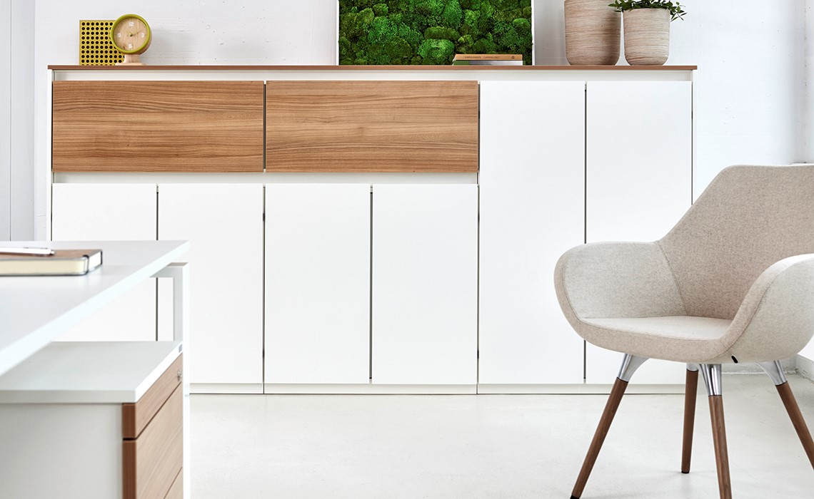 Purline, die Serie ausgewählter Schrankelemente mit grifflosen Fronten. Dabei sind die Kombinationsmöglichkeiten unendlich und lassen sich genau nach Ihren Vorgaben und Anforderungen anpassen.