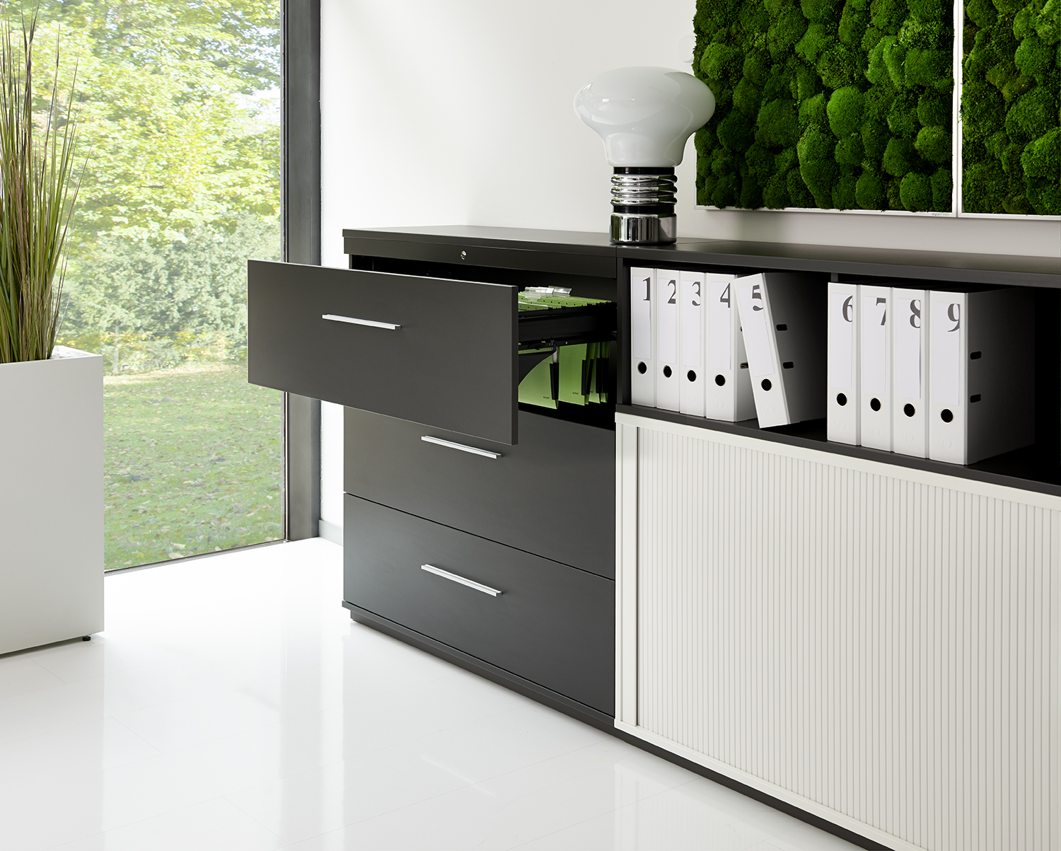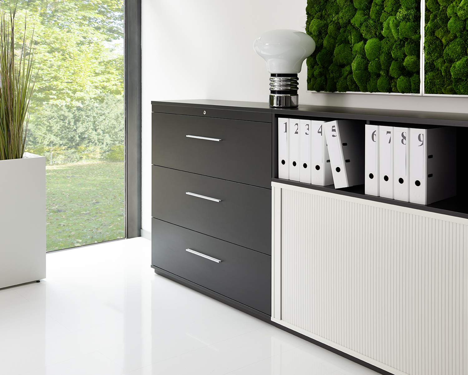Für Ordner oder Papier, für Akten oder Hängeregistratur, für Utensilien und Zubehör, mit Türen oder Jalousien, offen oder geschlossen, praktisch oder kreativ – Schränke bieten enormen Stauraum für jedes Büro.