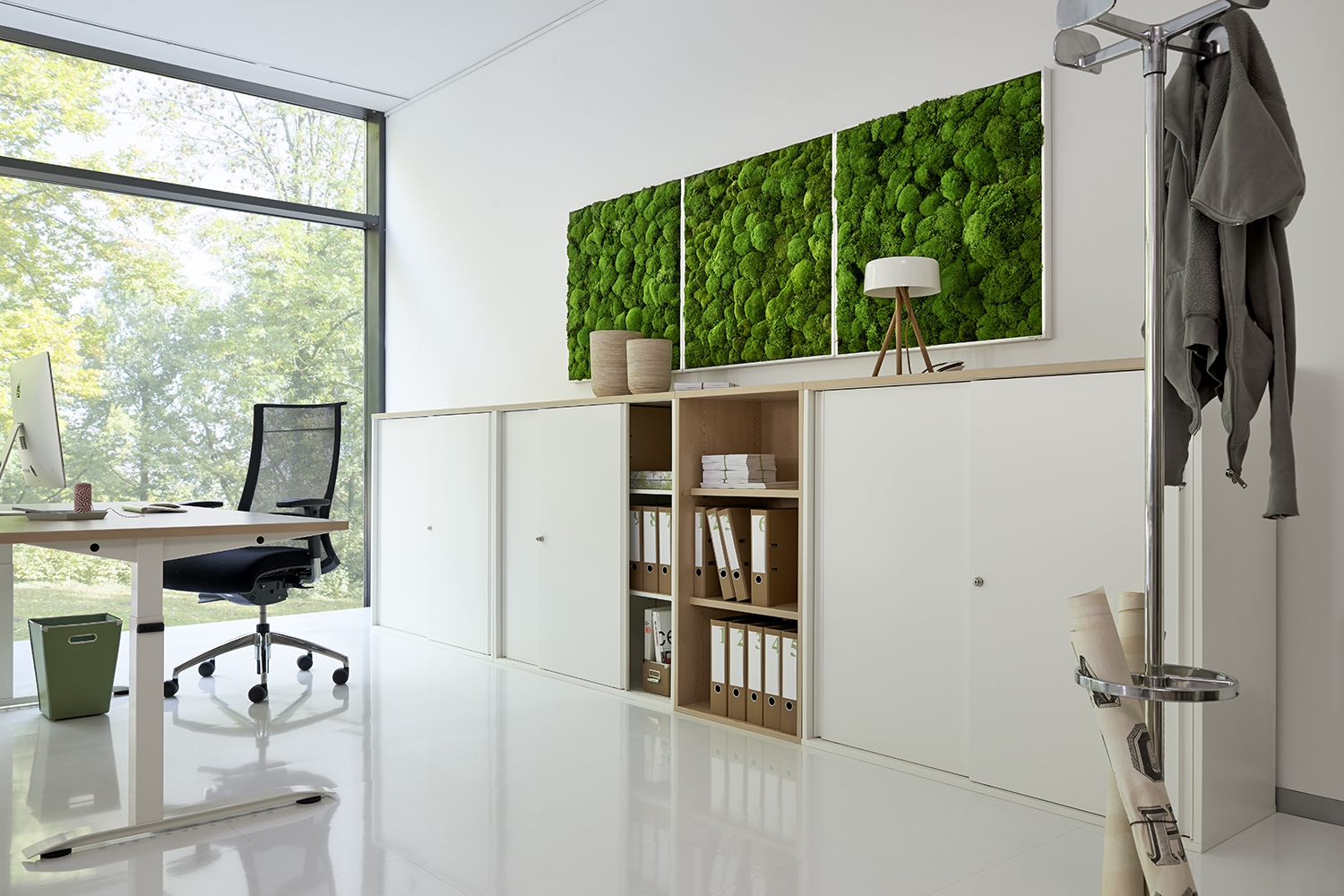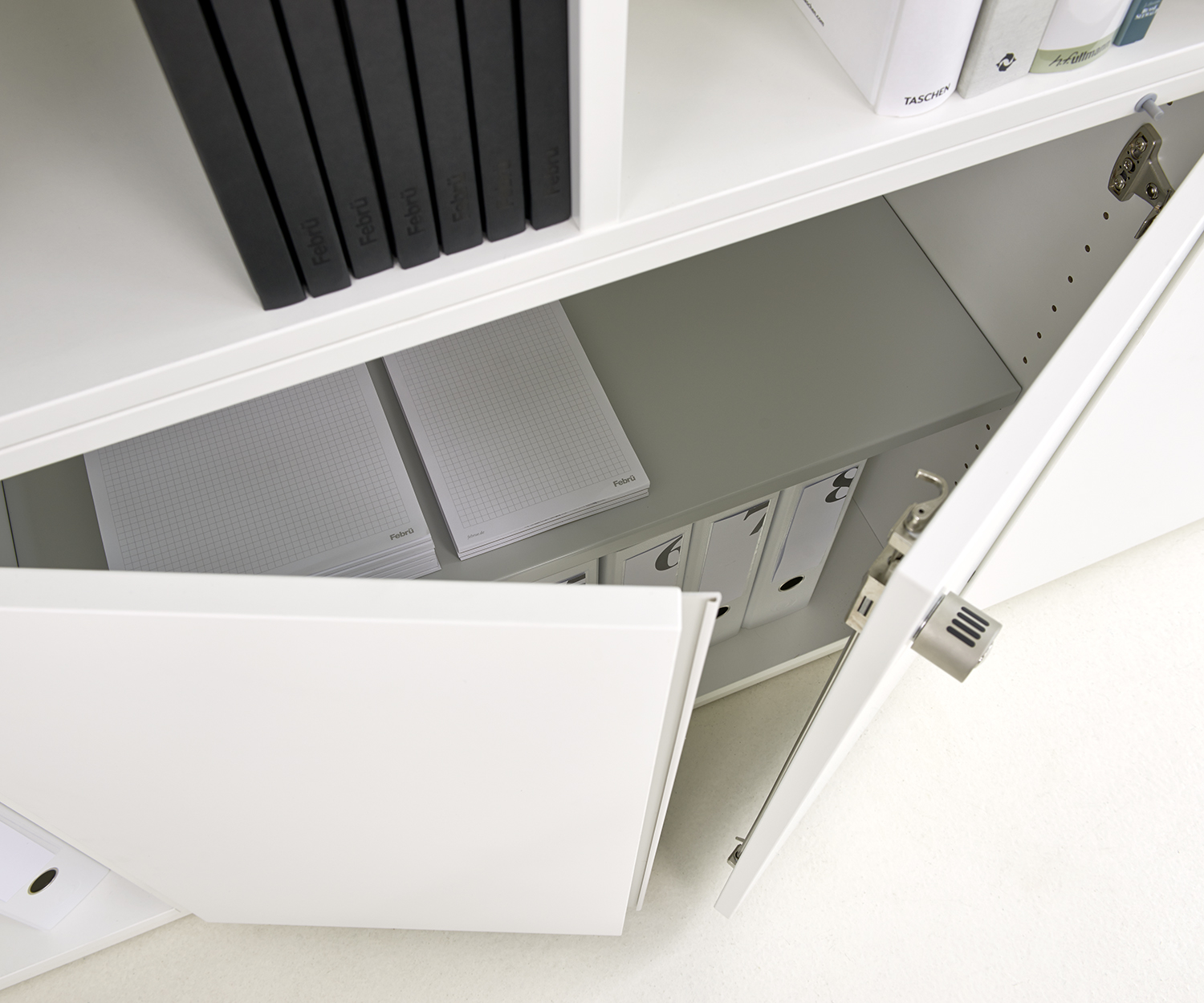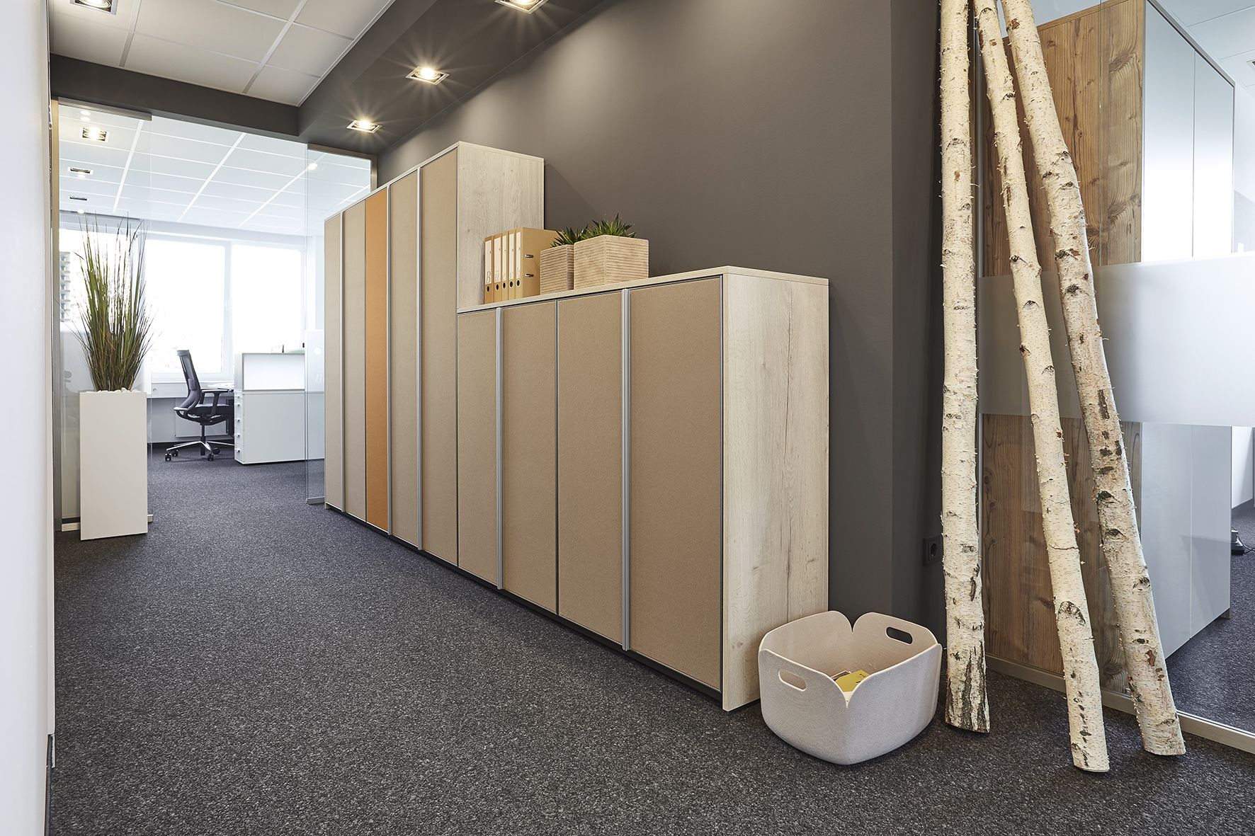 Trotz Digitalisierung gehören Schränke nach wie vor zum Büro. Ob nun Ordner, Bücher, Schreibutensilien oder alles, was nicht unbedingt auf den Schreibtisch gehört, im Schrank findet alles seinen Platz. Noch besser ist es, wenn neben dem Stauraum auch zusätzliche Funktionen, das Möbelstück zu etwas ganz besonderem machen. Optional lassen sich die Flügeltürenschränke von Febrü mit akustisch wirksamen Fronten ausstatten.