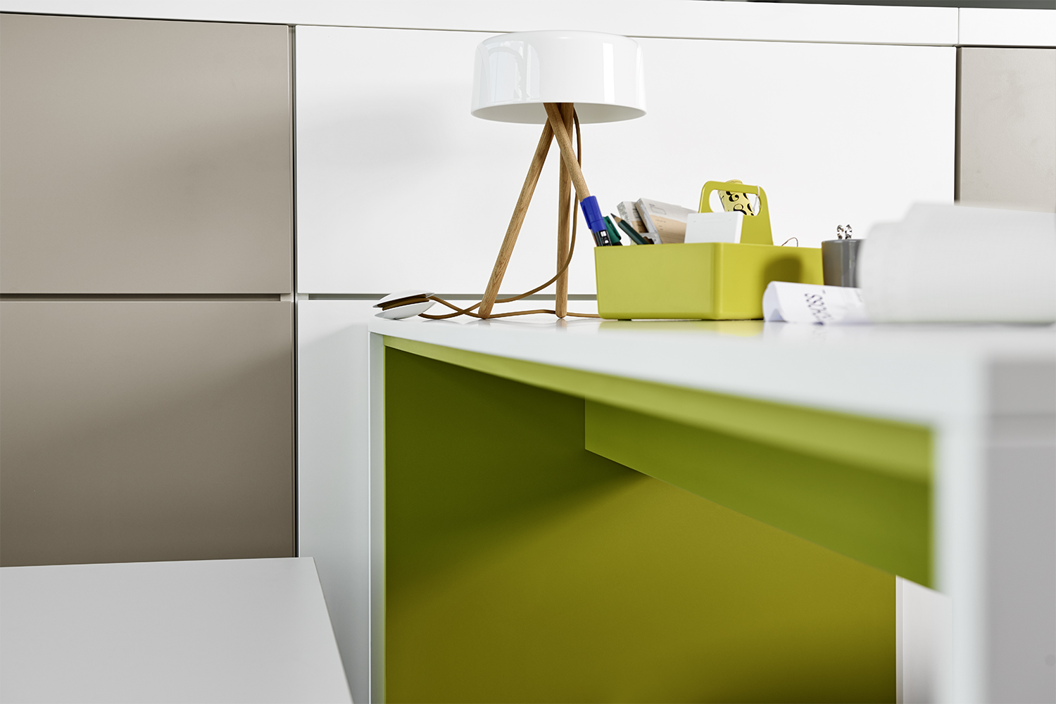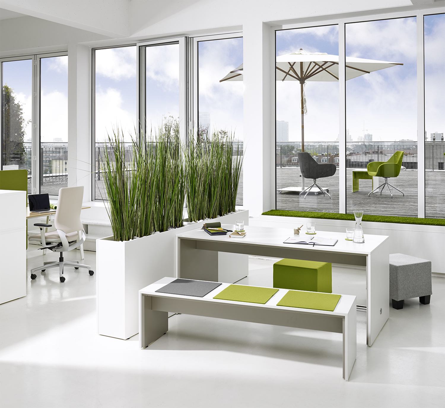 Der Name Meeting ist Programm: Wo immer im Büro in lockerer und entspannter Atmosphäre ein Treffen stattfinden soll, bietet Meeting den passenden Rahmen. Das Besondere daran: Tisch und die dazu passenden Sitzgelegenheiten – Hocker oder Bank – lassen sich in der Innenseite farblich akzentuieren. Mit einem anderen Standarddekor oder durch eines unserer farbigen Dekore, die das frische, moderne Design unterstreichen.
