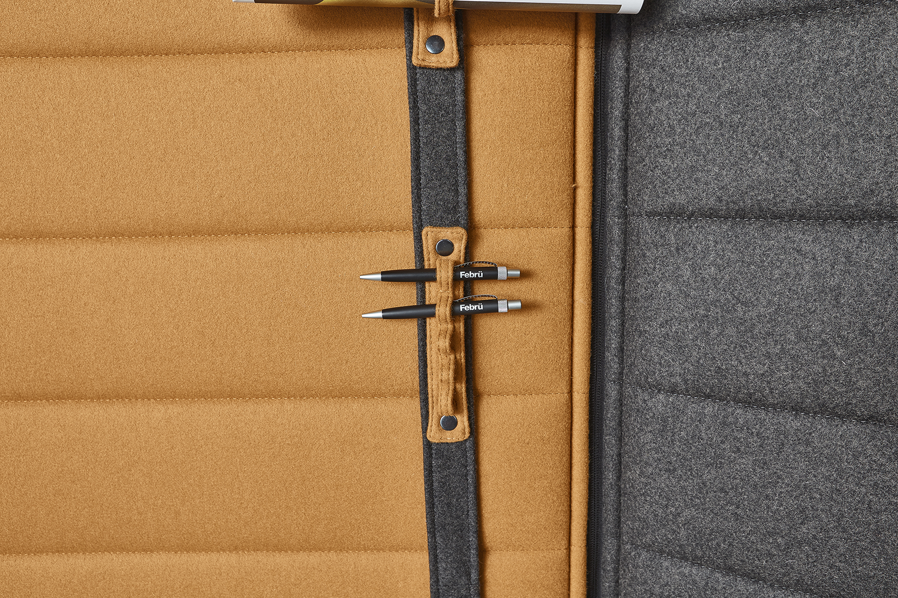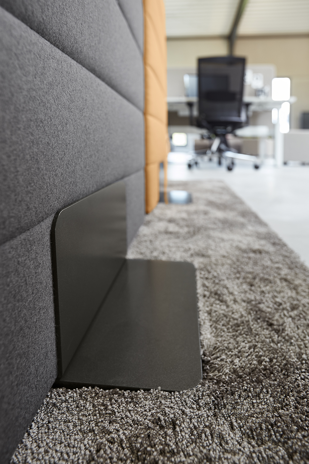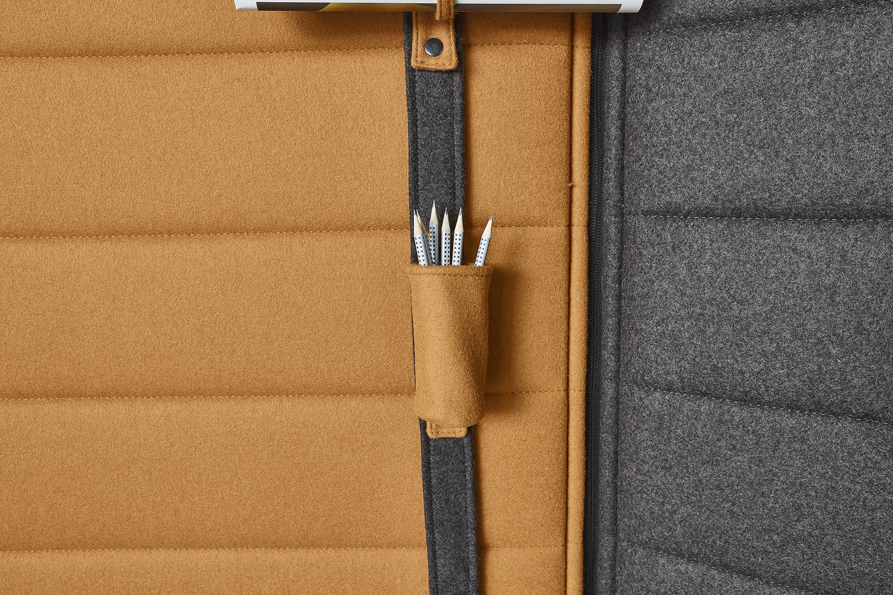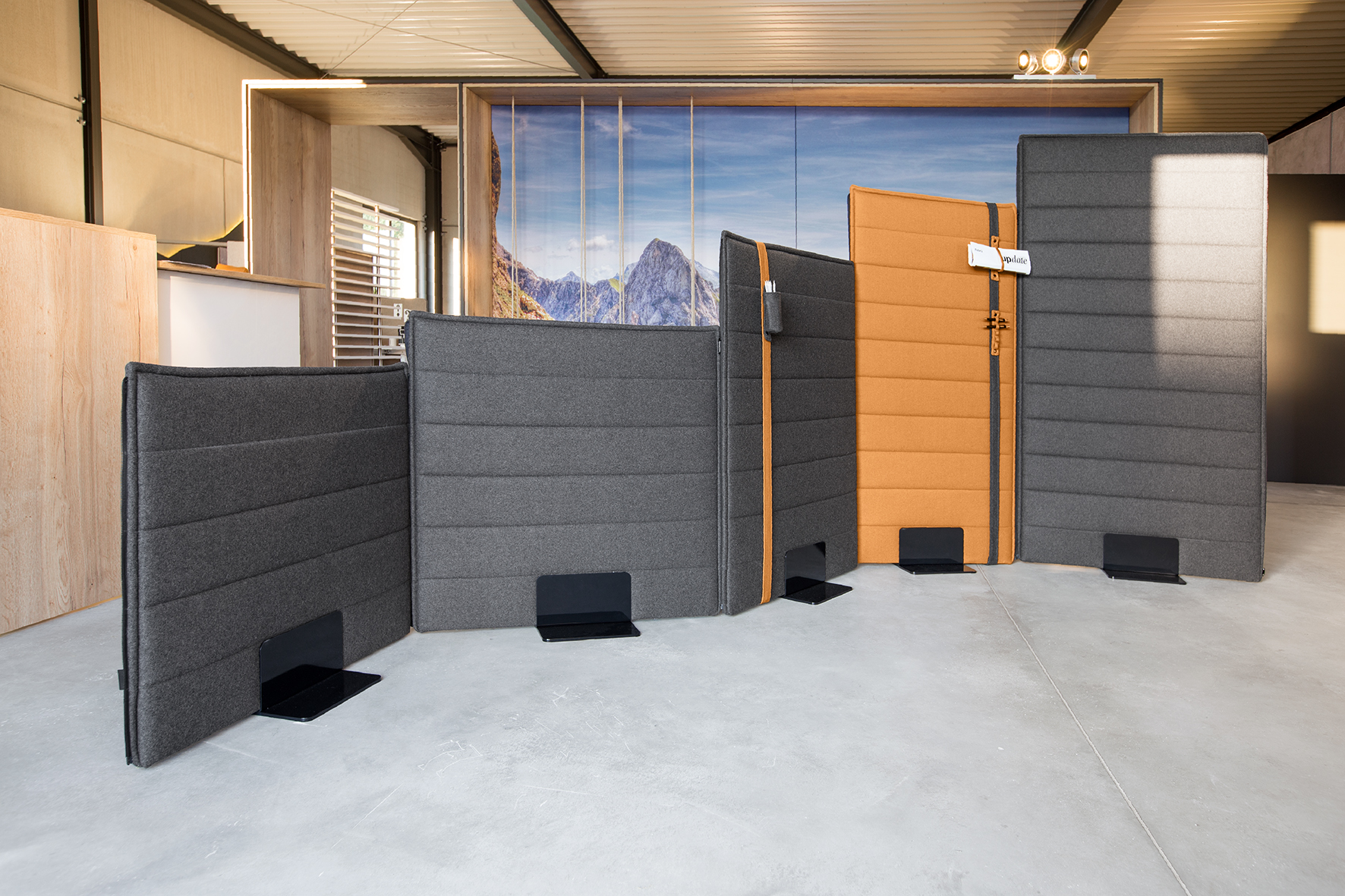 Mitten im Raum, zwischen zwei Arbeitsplätzen, direkt an einem Arbeitsplatz, im Eingangsbereich – kurz überall dort, wo Ruhe und eine optische Abschirmung erwünscht sind, zeigt sich das neue Trennwandsystem wandlungsfähig. Harmonisch abgestimmte Stoffe und Farben bieten gestalterische Spielräume. Die in fünf verschiedenen Höhen und vier Breiten erhältlichen Silent-Wandelemente lassen sich schnell und einfach konfigurieren. Dazu werden die einzelnen Elemente mit Reißverschlüssen verbunden. Ein zu den weich gepolsterten Paneelen kontrastierender Metallfuß bringt die nötige Standfestigkeit. Tischaufsatz- und Tischansatzelemente komplettieren Silent und ermöglichen multiple Anwendungen.