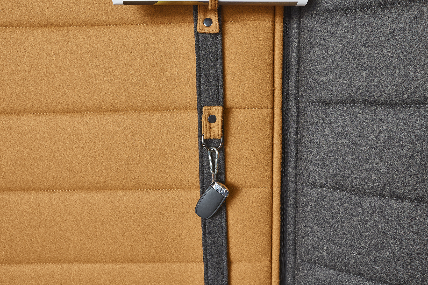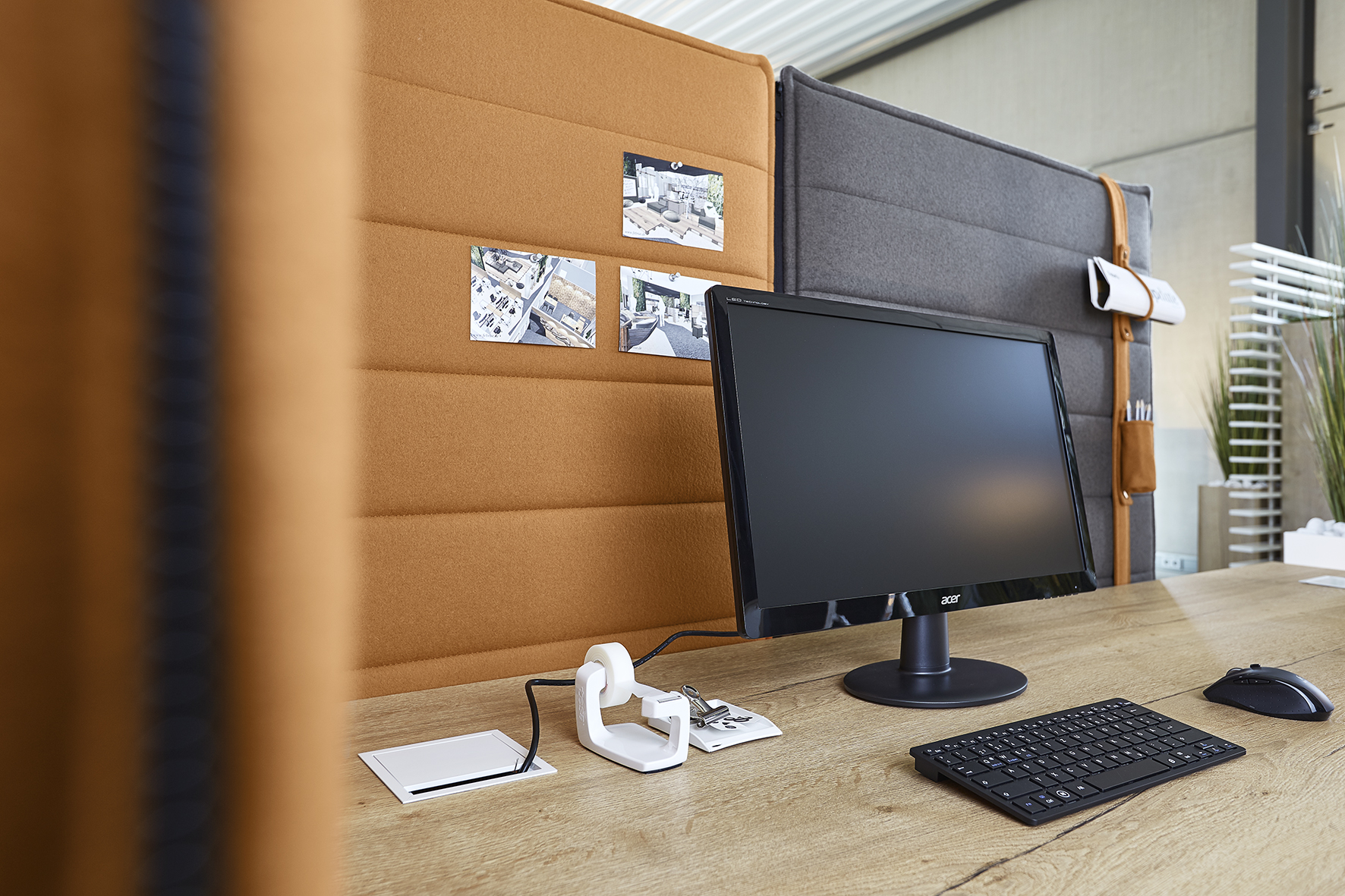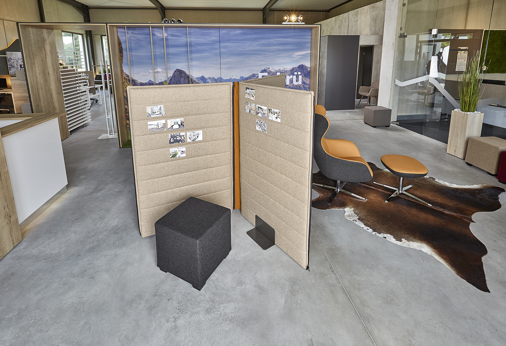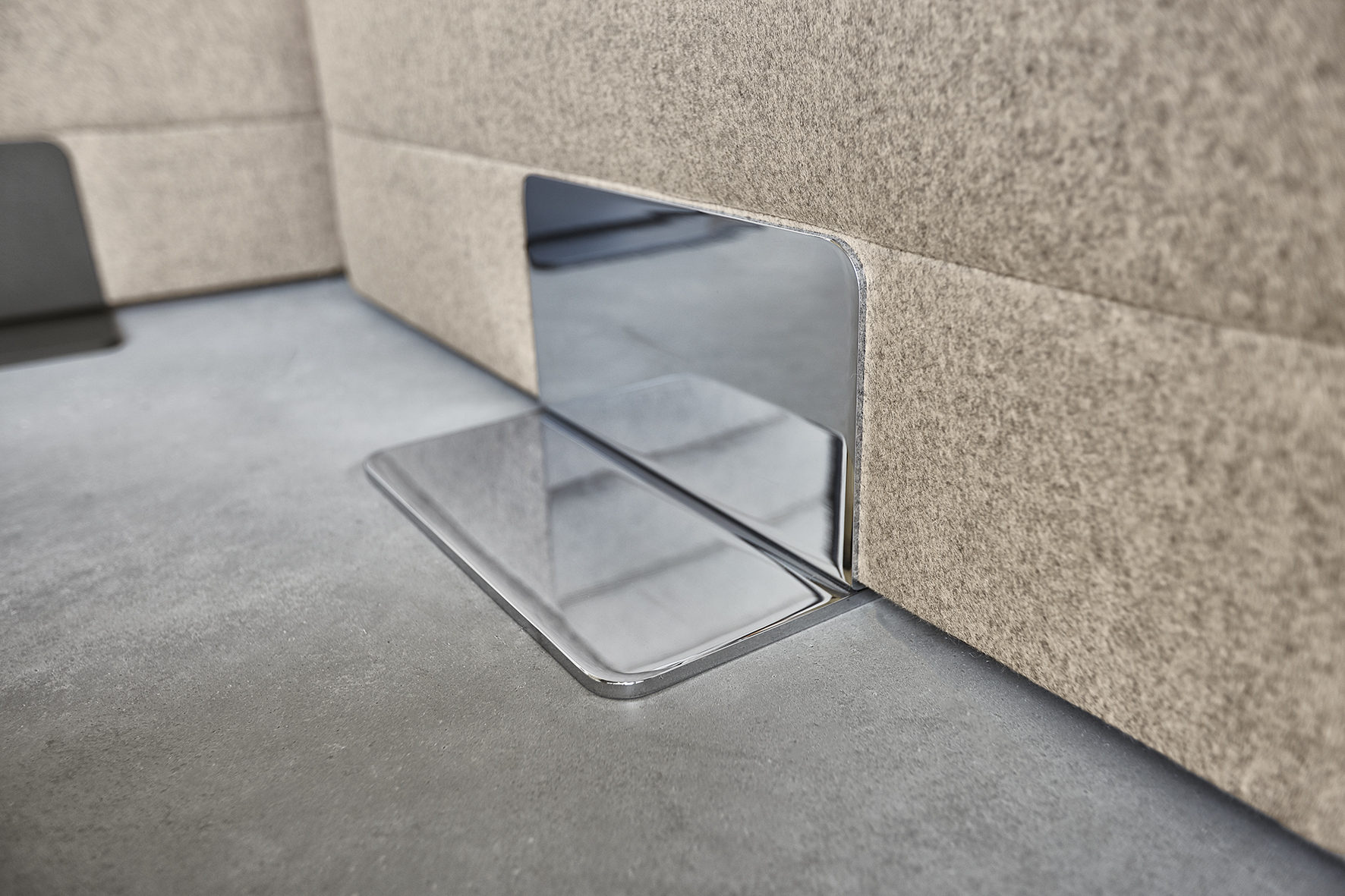 Mitten im Raum, zwischen zwei Arbeitsplätzen, direkt an einem Arbeitsplatz, im Eingangsbereich – kurz überall dort, wo Ruhe und eine optische Abschirmung erwünscht sind, zeigt sich das neue Trennwandsystem wandlungsfähig. Harmonisch abgestimmte Stoffe und Farben bieten gestalterische Spielräume. Die in fünf verschiedenen Höhen und vier Breiten erhältlichen Silent-Wandelemente lassen sich schnell und einfach konfigurieren. Dazu werden die einzelnen Elemente mit Reißverschlüssen verbunden. Ein zu den weich gepolsterten Paneelen kontrastierender Metallfuß bringt die nötige Standfestigkeit. Tischaufsatz- und Tischansatzelemente komplettieren Silent und ermöglichen multiple Anwendungen.