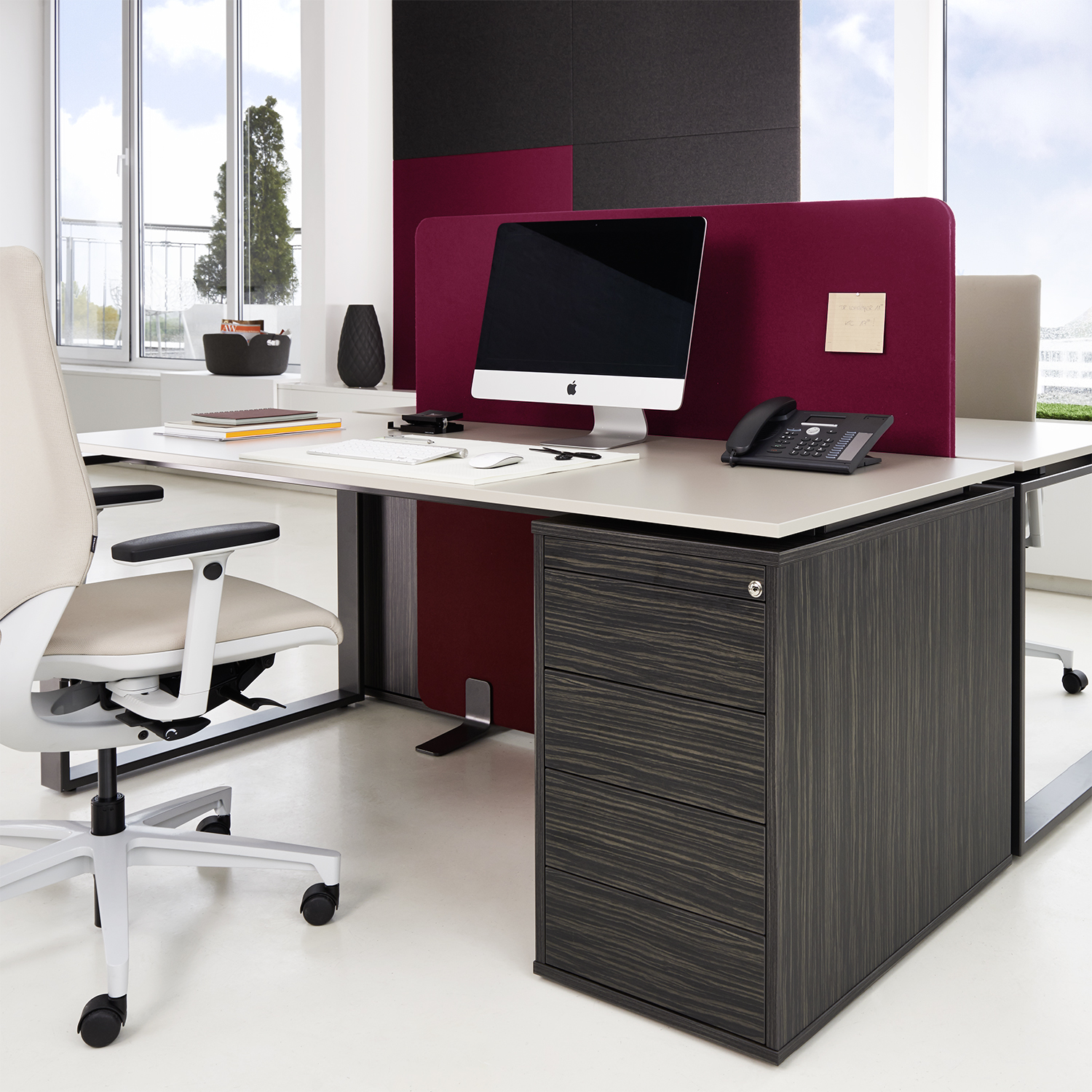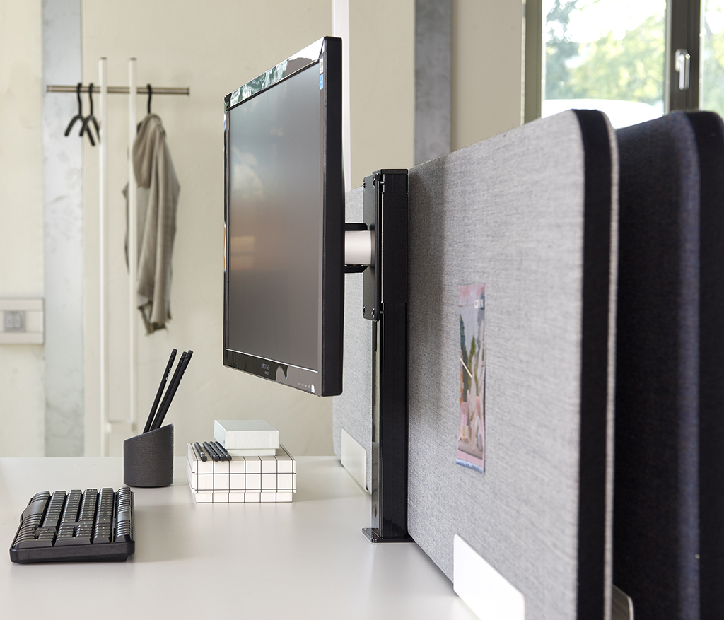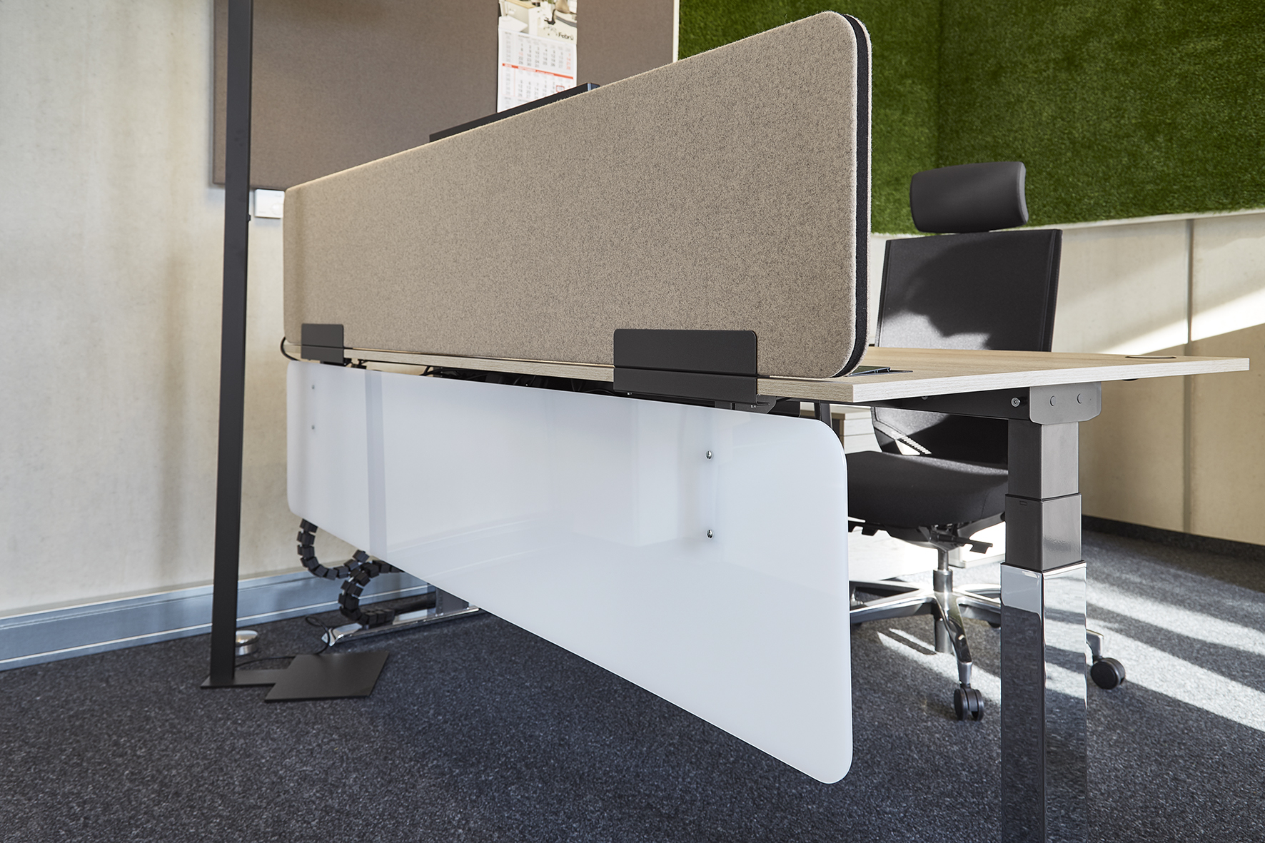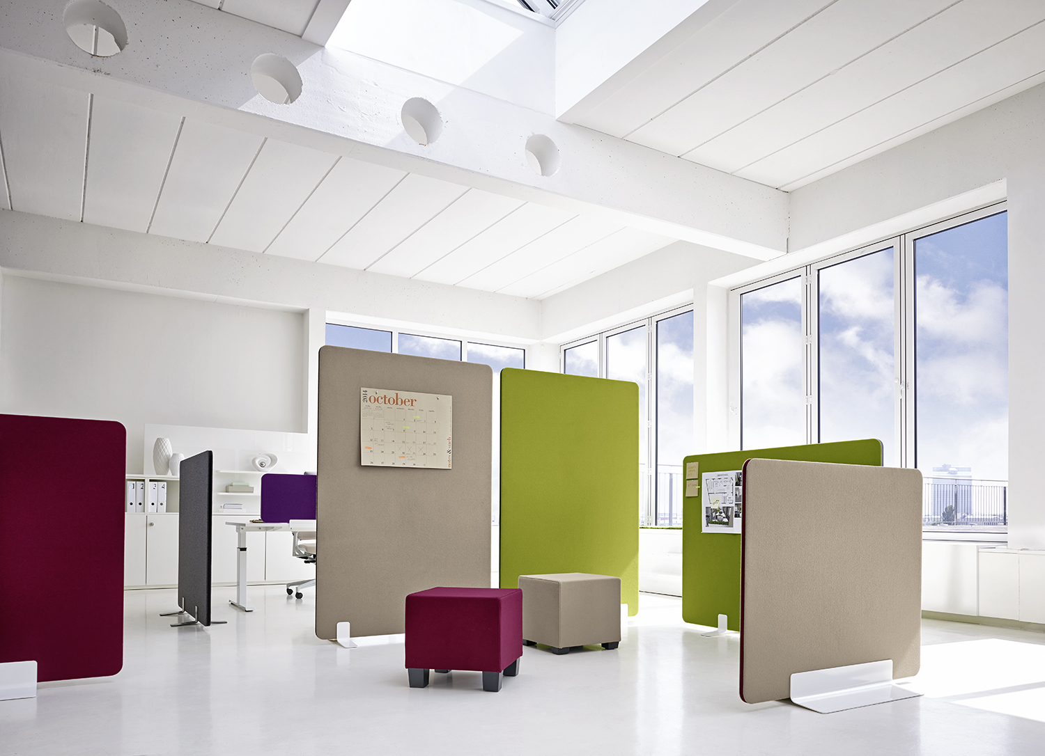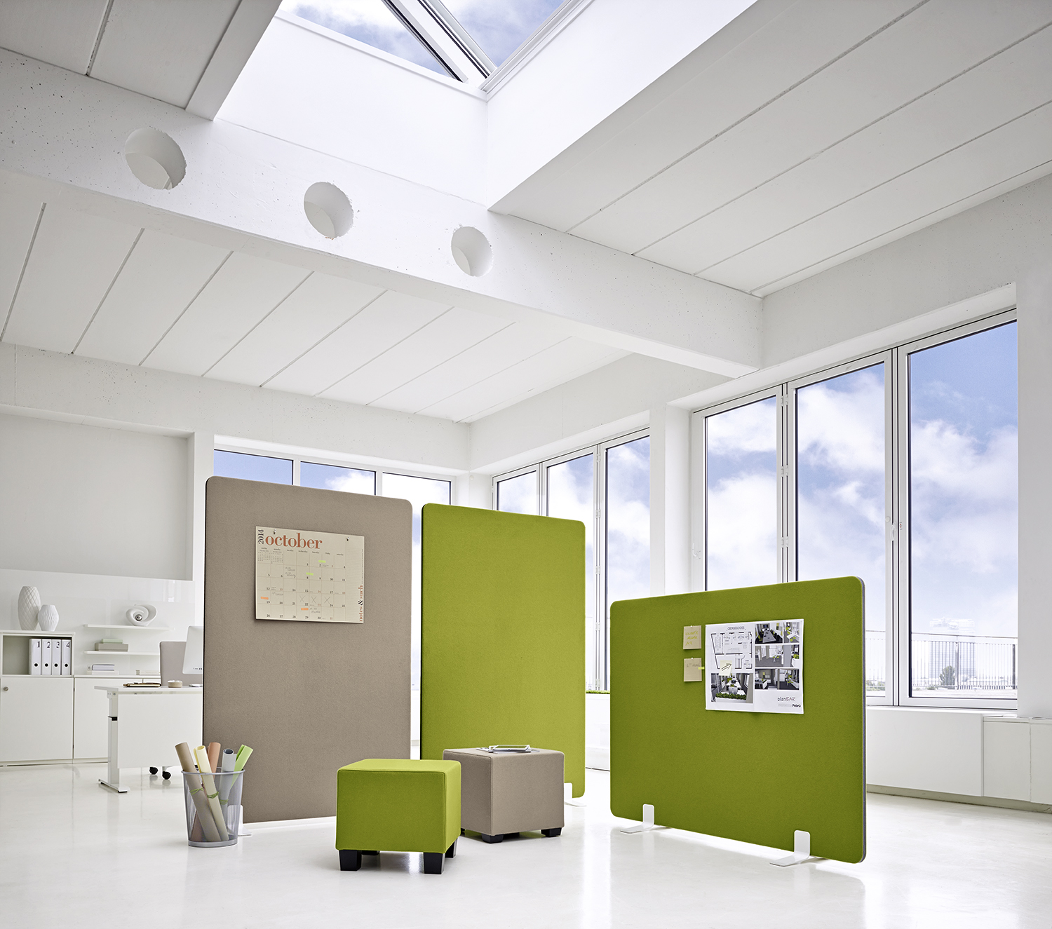 Screen kann frei im Büro oder direkt an einen Arbeitsplatz gestellt werden und bietet so idealen Sichtschutz. Die Raumakustik wird positiv beeinflusst. Gleichzeitig strukturiert das Gliederungssystem große Büroräumev mit dem Ergebnis, dass ein angenehmes Raumgefühl entsteht. So lässt es sich bestens arbeiten!