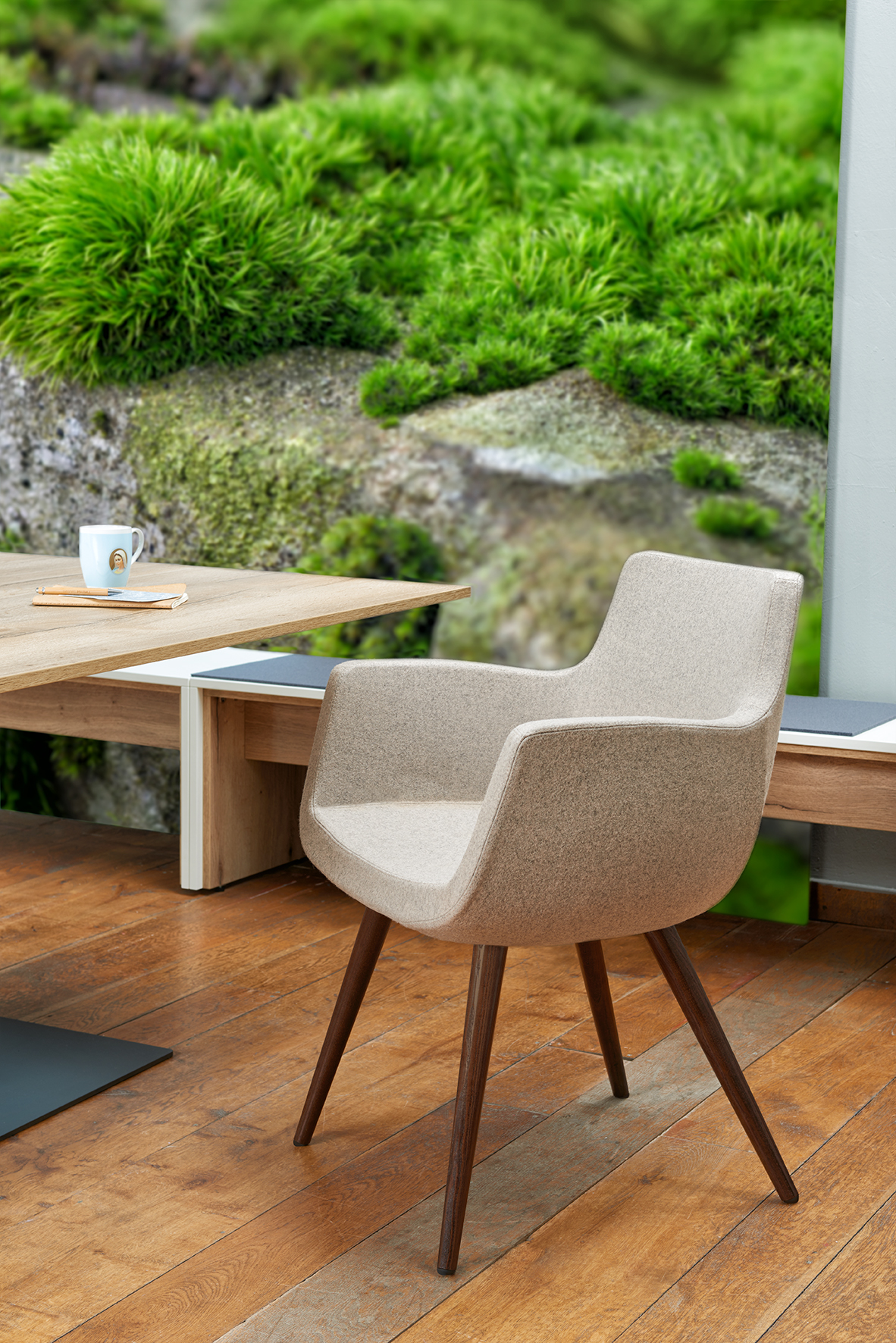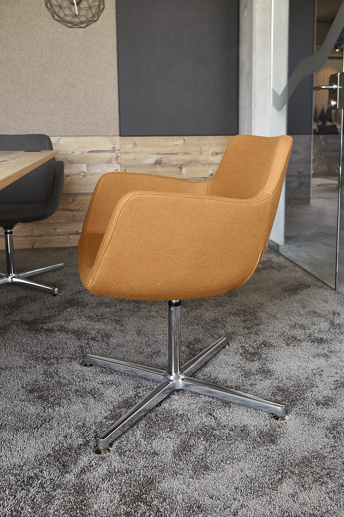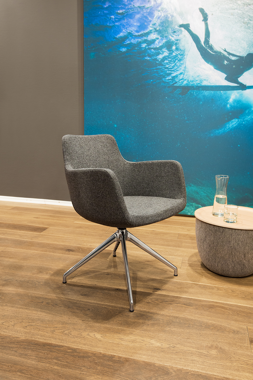 Die Gedanken wieder in Schwung bringen, sich inspirieren lassen oder einfach nur relaxen, dabei helfen Ruhezonen im Büro. Wenn der Workflow in der modernen Arbeitswelt stimmen soll, muss die Möblierung dazu passen. Mit dem neuen Loungestuhl "Soul" interpretieren wir den Cocktailsessel neu. "Soul" ist so konzipiert, dass er seine Besitzer "umarmt": beim Meeting im Büro, in Seminarräumen, Lobbys, Hotels, Studios oder Arztpraxen.