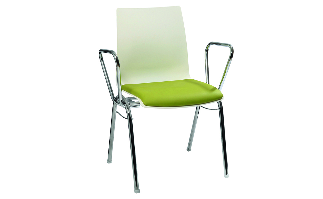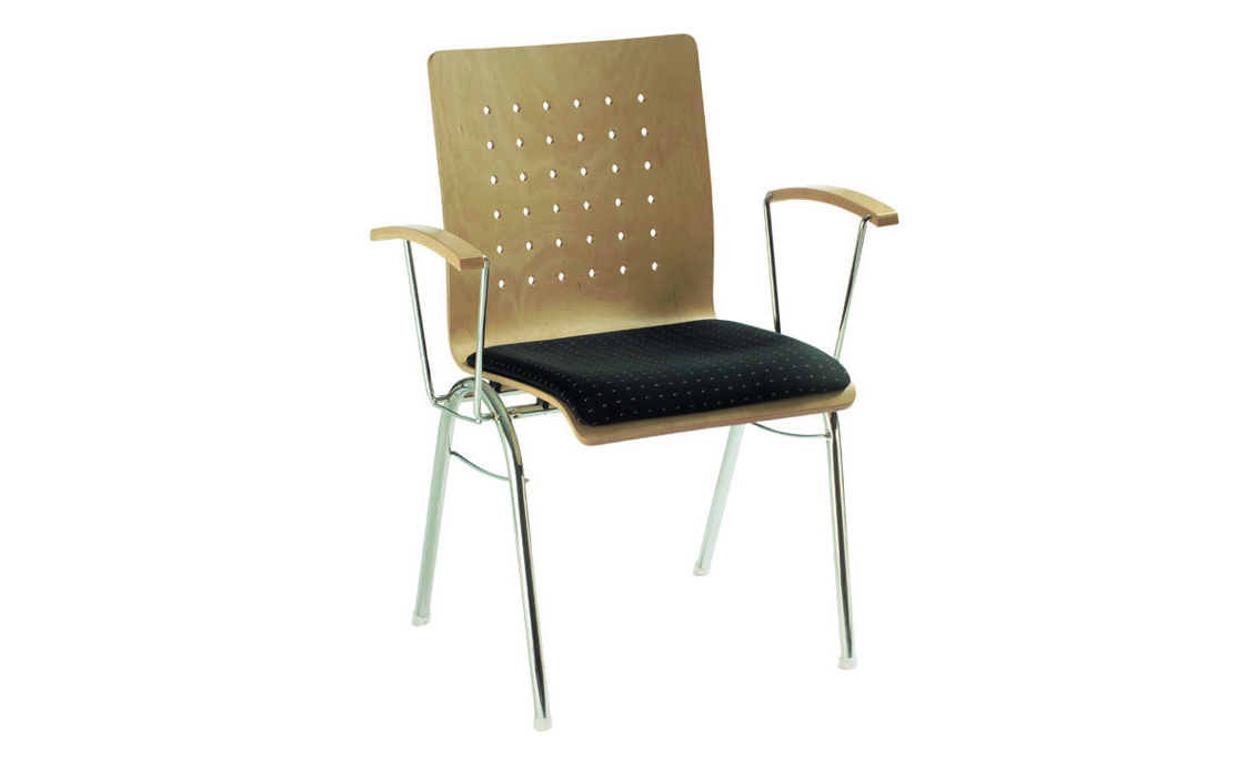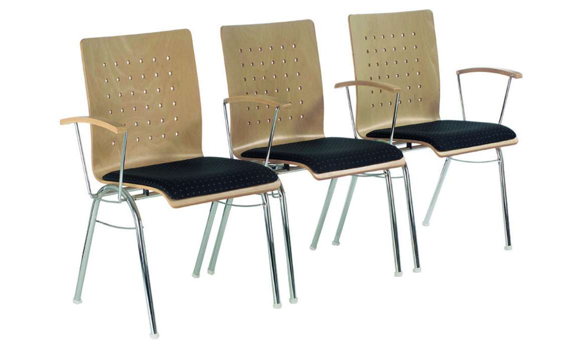 Der klassische Stapelstuhl kann mit oder ohne Armlehne bestellt werden. Die ergonomische Schalenform K (Komfortschale) sorgt für eine angenehme Sitzhaltung. Dank seiner Flexibilität kommt das Modell 103 häufig in der Großraumbestuhlung zum Einsatz.