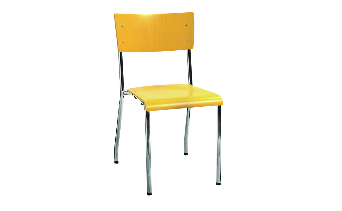 Als flexible Klassiker haben sich die Stahlrohrstühle der Reihe 117 im Objektbereich bewährt. Sie sind mit unterschiedlich geformten Echtholzschalen und in verschiedenen Farbausführungen erhältlich.
