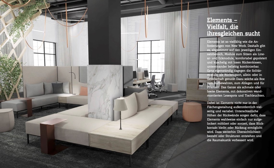 Ein außerordentlicher Anspruch an Ästhetik und Sitzkomfort sowie maximale Flexibilität und ein immenser Gestaltungsspielraum waren das erklärte Ziel bei der Entwicklung von Elements.