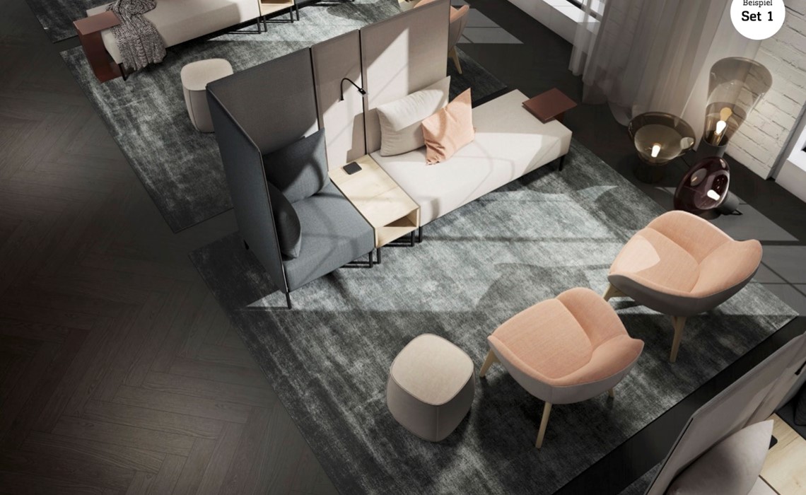 Weiche Formen statt strenger Linien, wohnliche Anmutung statt reiner Funktionsoptik, lose Kissen statt fester Rückenkeile, filigrane Gestelle statt massiger Sockel, eine flexible Verbindung statt starrer Verschraubung. Und auf dieser Basis ganz viele unterschiedlicher Elemente, nicht nur zum Sitzen.